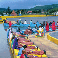 fieles en lento peregrinaje asisten a los centros de sanación;