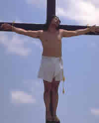 del crucificado al palo y se eleva la cruz reposando aquél sus